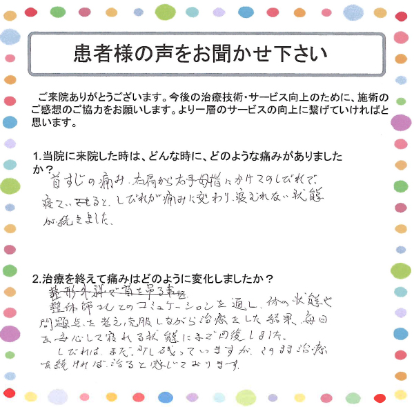 【肩こり、腰痛】厚木市 Iさん