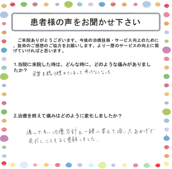 痛みが改善され仕事に復帰できました。